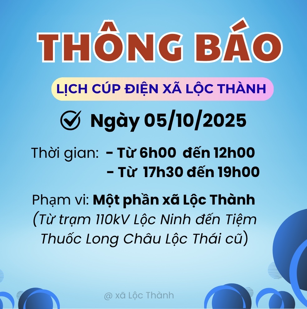 THÔNG BÁO NGỪNG, GIẢM MỨC CUNG CẤP ĐIỆN NGÀY 05/10/2025