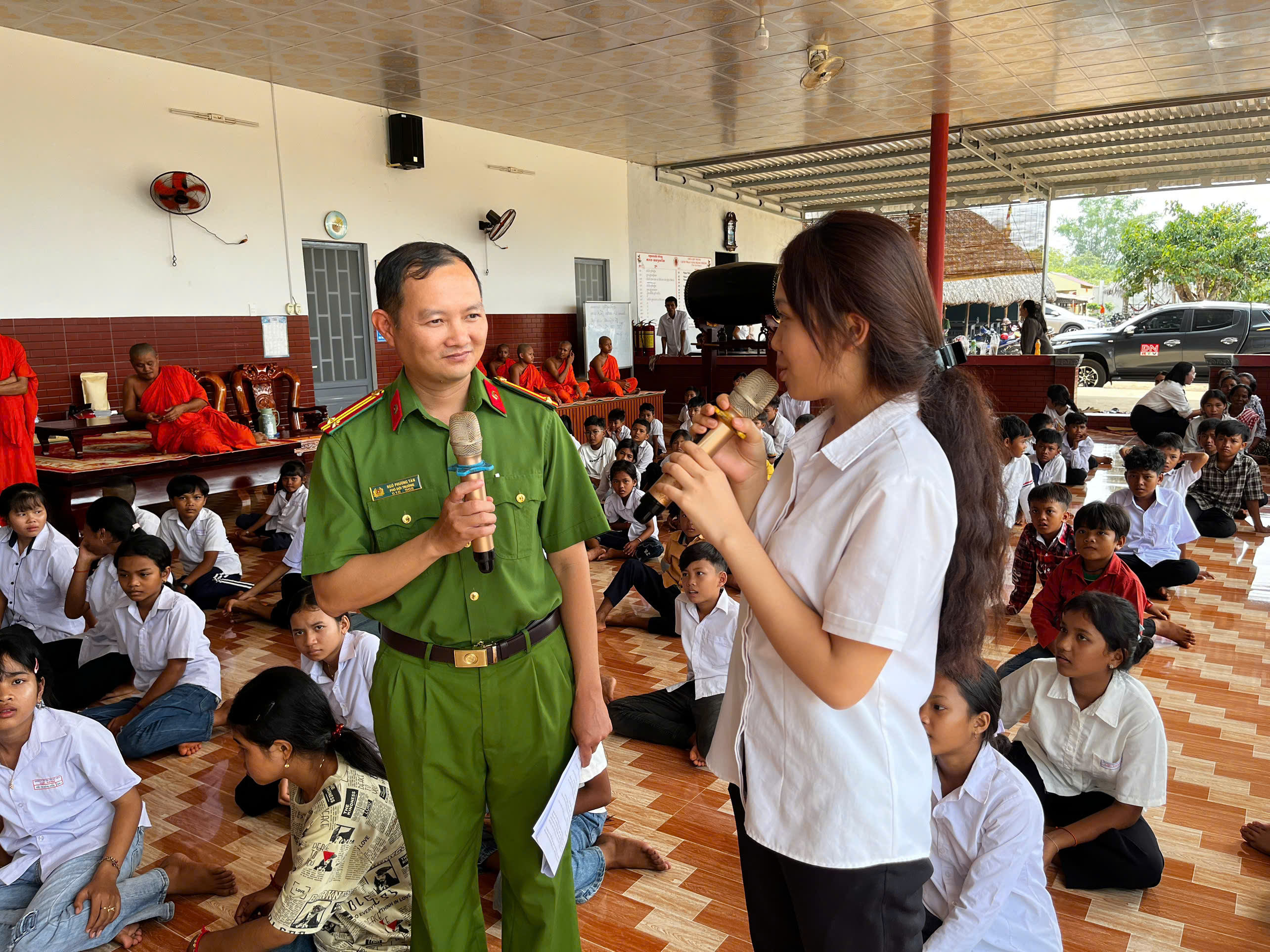 Trong buổi tuyên truyền, 200 người dân là các em học sinh, tăng ni phật tử và cộng đồng đã được cán bộ Công an xã tuyên truyền về Luật Giao thông đường bộ, vai trò của người tham gia giao thông đối với công tác bảo đảm trật tự, an toàn giao thông và xây dựng văn hóa giao thông, trong đó có lứa tuổi học sinh. Bên cạnh đó, các em còn được tuyên truyền về tác hại của ma túy bằng hình ảnh và cách nhận biết các thủ đoạn lôi kéo của các đối tượng ma tuý; phương thức thủ đoạn của tội phạm công nghệ cao; tội trộm cắp tài sản.