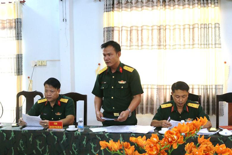 Phát biểu chỉ đạo, lãnh đạo Ban Chỉ huy Phòng thủ khu vực 4 ghi nhận kết quả công tác quân sự, quốc phòng của xã thời gian qua; đồng thời đề nghị Ban CHQS xã tiếp tục tham mưu tốt công tác tuyển chọn, gọi công dân nhập ngũ và chuẩn bị chu đáo các điều kiện tổ chức rước dân quân trở về địa phương theo kế hoạch.