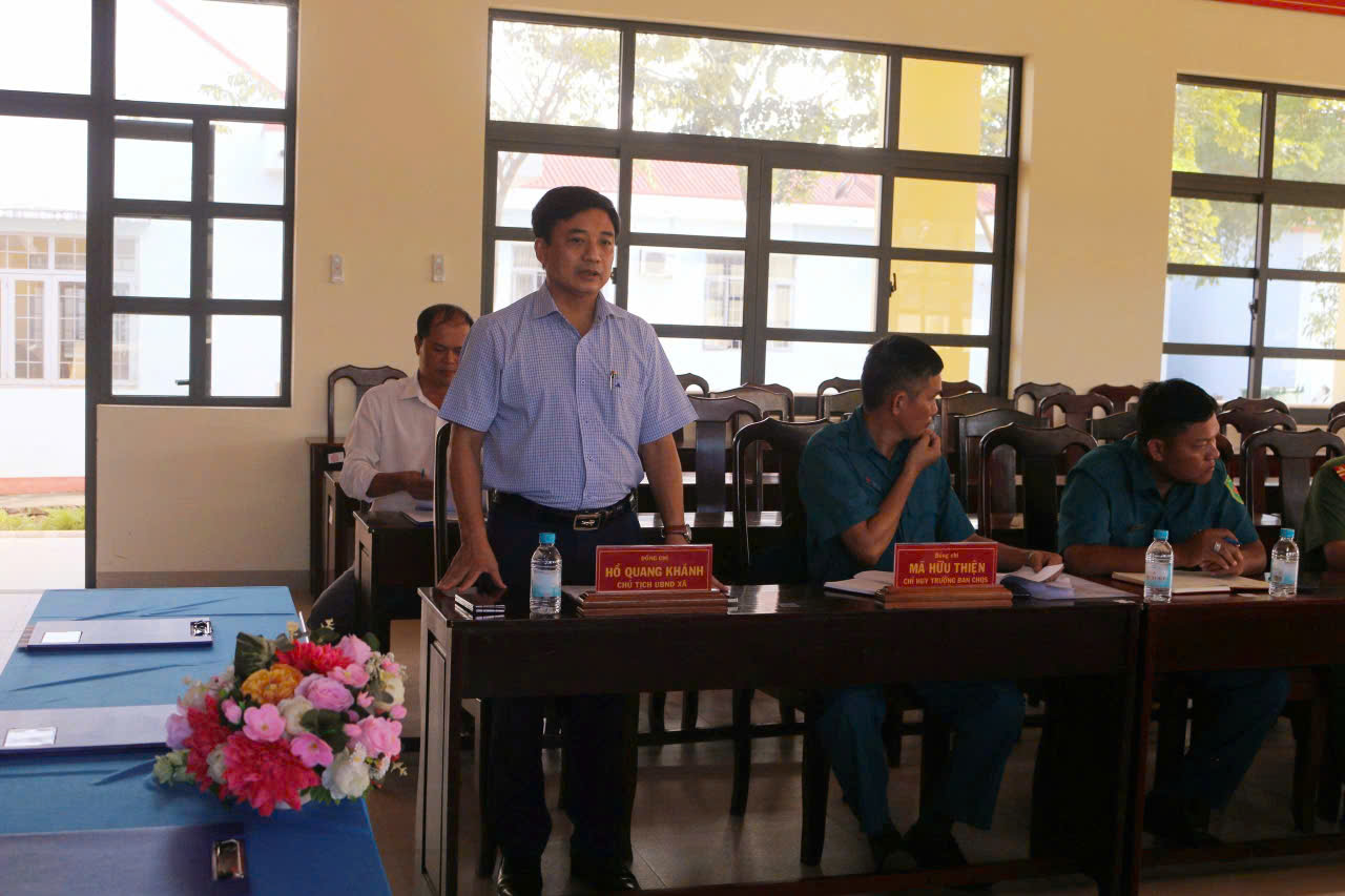 Phát biểu khai mạc, đồng chí Hồ Quang Khánh - Phó Bí thư Đảng ủy, Chủ tịch UBND xã nhấn mạnh tầm quan trọng của việc thiết lập cơ chế phối hợp ba lực lượng, nhằm tạo sự chủ động, thống nhất trong xử lý các vấn đề về an ninh, trật tự và quốc phòng, đặc biệt trong bối cảnh địa bàn có nhiều yếu tố phức tạp đòi hỏi sự vào cuộc đồng bộ, nhịp nhàng.