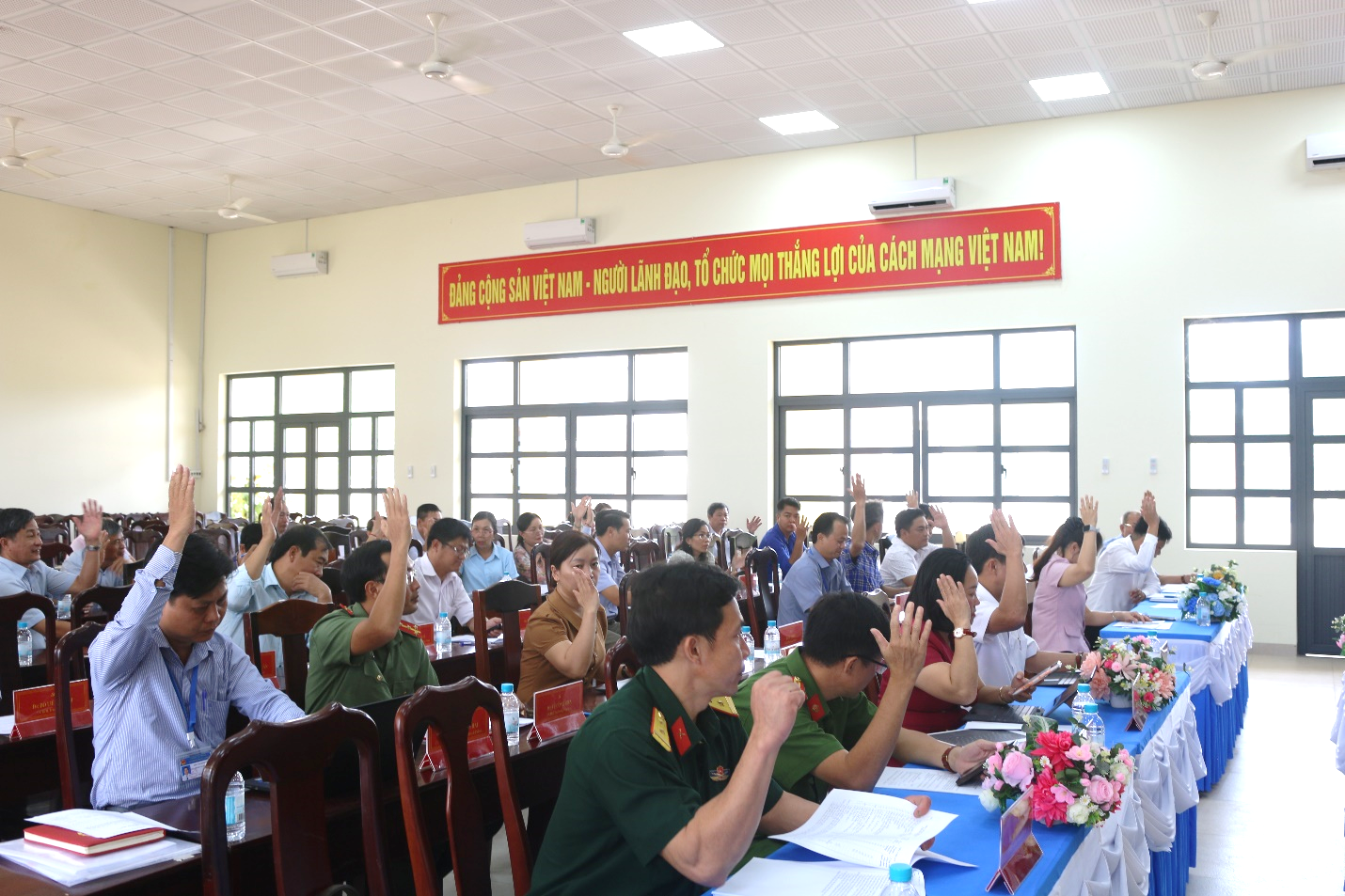 Các đại biểu, biểu quyết giới thiệu tái cử chức danh Chủ tịch HĐND xã Lộc Thành nhiệm kỳ 2026-2031