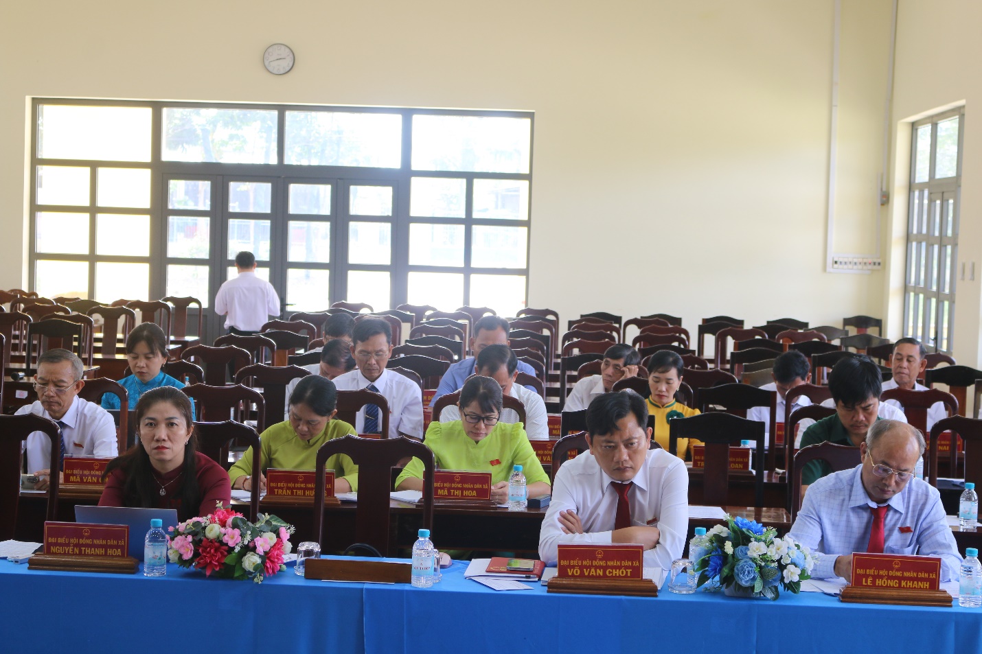 Dự kỳ họp có đồng chí Nguyễn Ngọc Hiền – Bí thư Đảng ủy, Chủ tịch HĐND xã, đồng chí Hồ Quang Khánh – Phó Bí thư Đảng ủy, Chủ tịch UBND xã, các đại biểu HĐND xã khóa XII, cùng đại diện các ban, ngành, đoàn thể và trưởng các ấp trên địa bàn xã.
