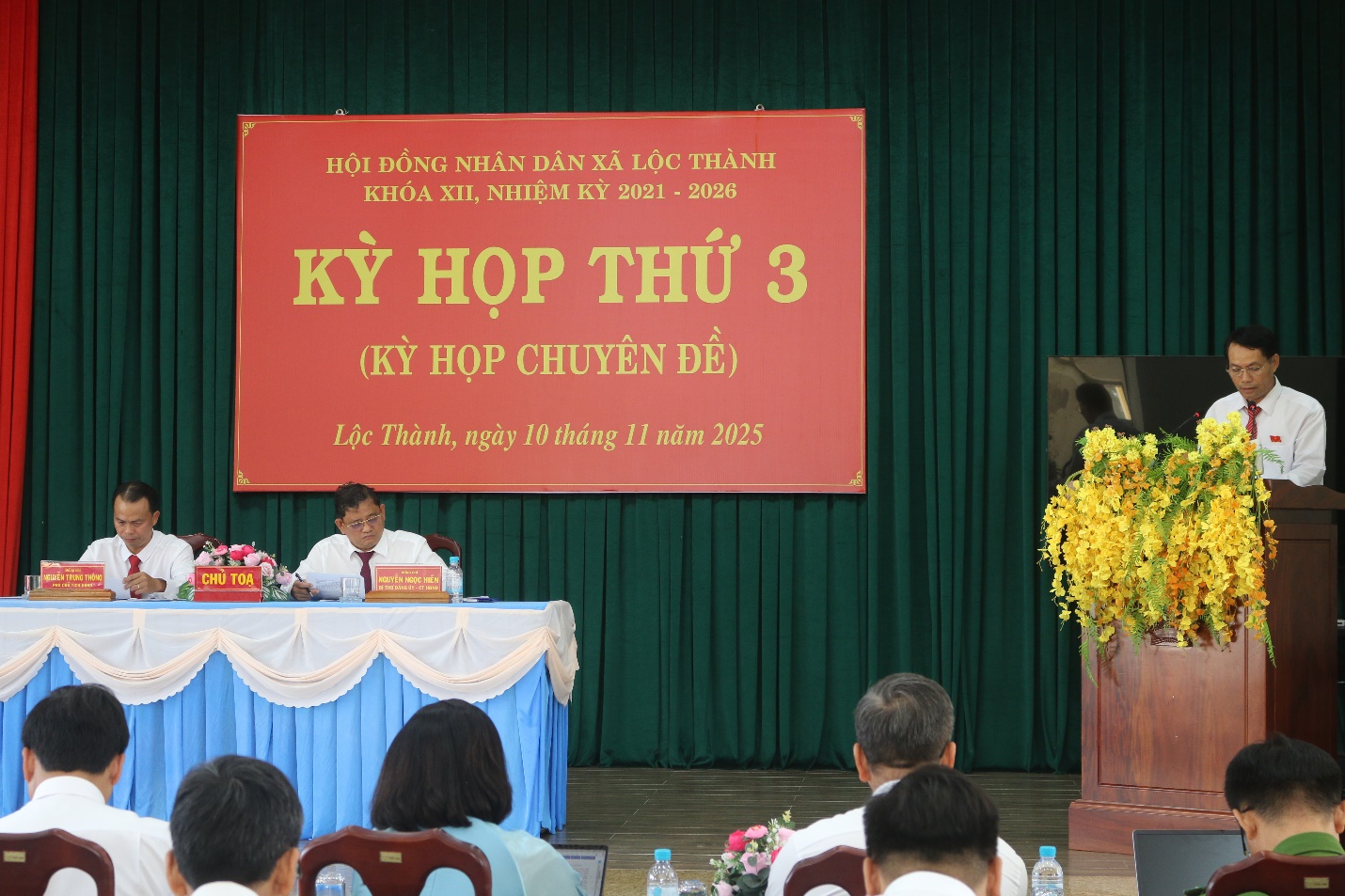 Ngày 10 tháng 11 năm 2025, Hội đồng nhân dân xã Lộc Thành khóa XII, nhiệm kỳ 2021–2026 đã tổ chức Kỳ họp thứ 3 để xem xét, thảo luận và quyết nghị nhiều nội dung quan trọng liên quan đến phát triển kinh tế - xã hội, đầu tư công, tài chính – ngân sách và công tác tổ chức cán bộ năm 2025.