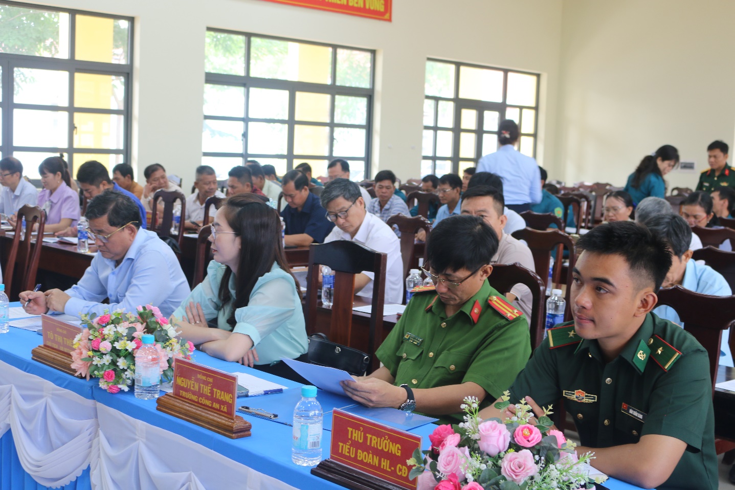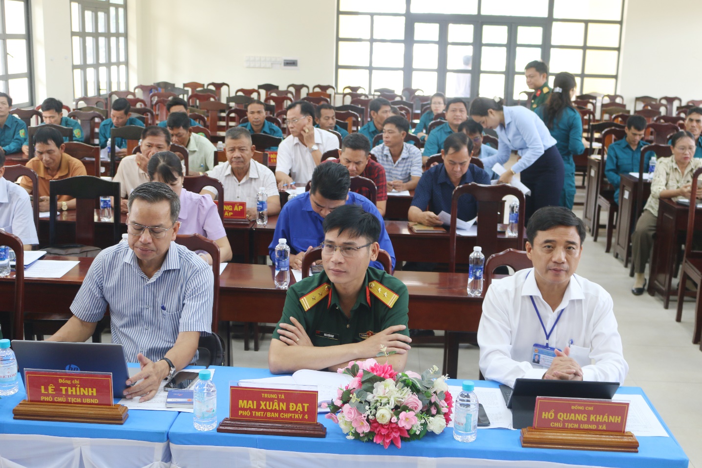 Chủ trì hội nghị đồng chí Hồ Quang Khánh – Phó bí thư đảng ủy, Chủ tịch UBND xã chủ trì. Cùng tham dự có đồng chí Tô Thị Thêu – UV.BTV, Chủ tịch UBMTTQVN; các đồng chí Phó Chủ tịch UBND xã; đại diện lãnh đạo các ban, ngành chuyên môn; diện lãnh đạo Công an xã; đại diện lãnh đạo Tiểu đoàn huấn luyện cơ động bộ đội biên phòng tỉnh Đồng Nai; Ban Chỉ huy Quân sự xã; Bí thư Chi bộ 15 ấp; thành viên Hội đồng Nghĩa vụ quân sự xã; trưởng 15 ấp và các tập thể, cá nhân được khen thưởng.