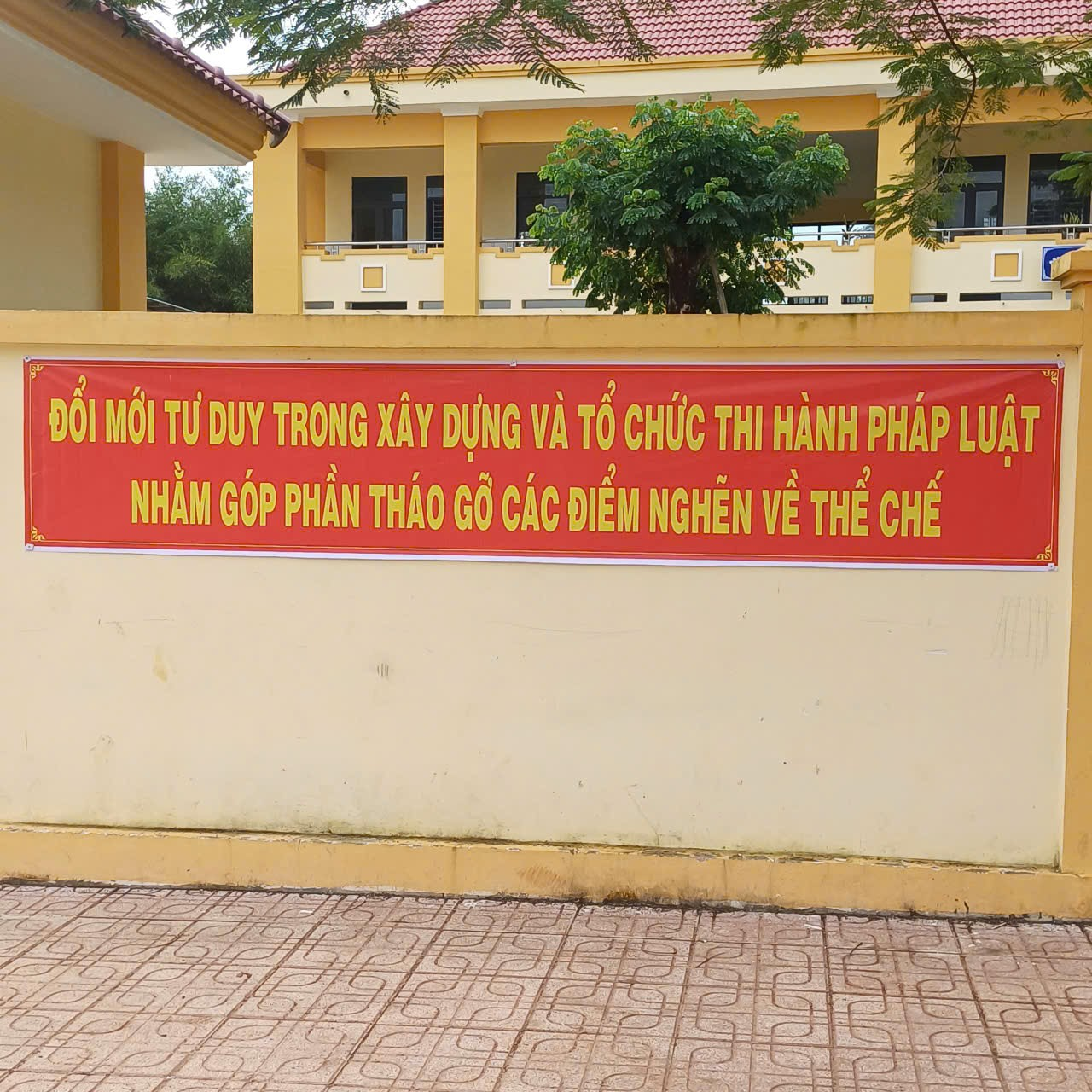 Song song đó, địa phương còn chú trọng công tác tuyên truyền trực quan thông qua việc treo pano, băng rôn, khẩu hiệu tại trụ sở UBND xã, các tuyến đường trung tâm, trường học và khu dân cư, tạo không khí phấn khởi, lan tỏa sâu rộng tinh thần “Sống và làm việc theo Hiến pháp và pháp luật” trong toàn thể nhân dân.