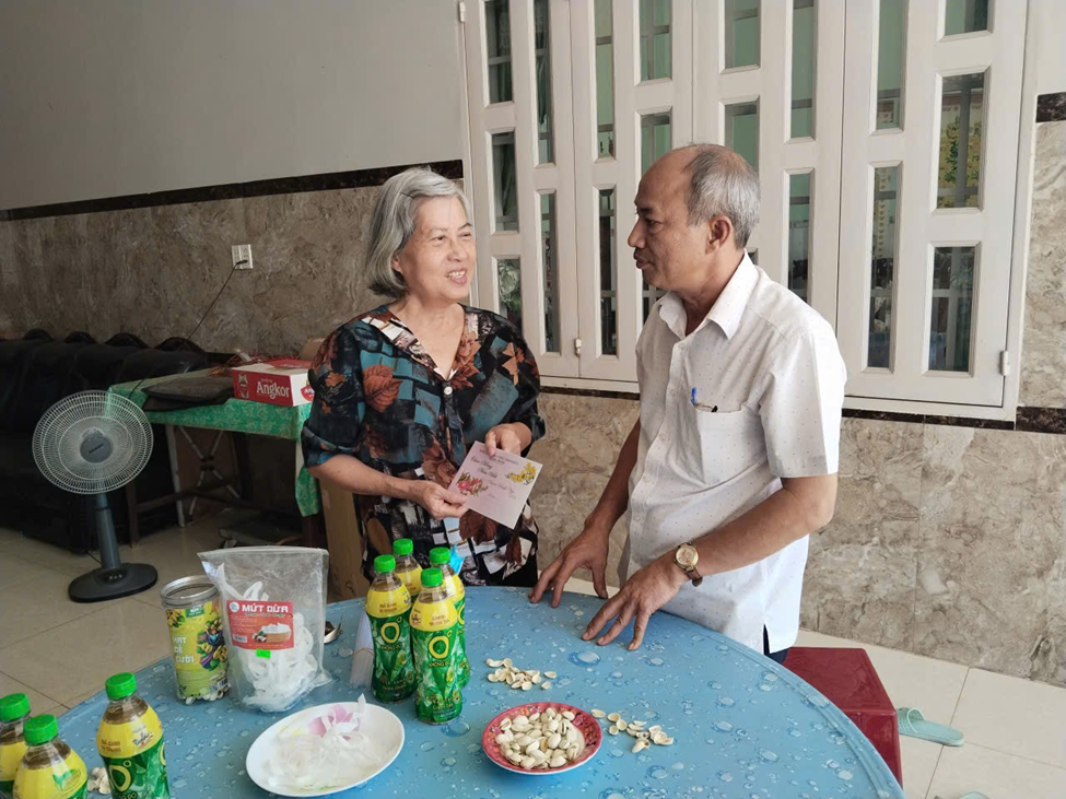 Đoàn cũng đã đến thăm các đồng chí nguyên lãnh đạo Đảng ủy xã và đảng viên cao tuổi Đảng, gồm: đồng chí Trần Văn Sửu - nguyên Bí thư Đảng ủy xã; đồng chí Trần Thị Hường - nguyên Phó Bí thư Thường trực Đảng ủy xã; đảng viên Mã Viết Xô - Huy hiệu 60 năm tuổi Đảng (ấp Tân Mai).