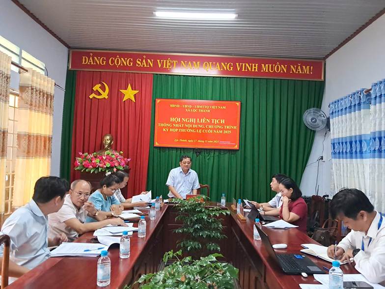 Sáng ngày 17/11/2025, tại phòng họp Đảng ủy xã Lộc Thành, Thường trực HĐND xã tổ chức Hội nghị liên tịch giữa Thường trực HĐND, UBND và Ủy ban MTTQ Việt Nam xã nhằm thống nhất nội dung, chương trình chuẩn bị cho Kỳ họp thứ 4 HĐND xã nhiệm kỳ 2021–2025, HĐND xã khóa XII, nhiệm kỳ 2021-2026.