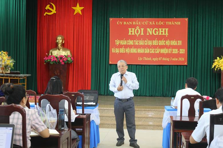Sáng ngày 07/3/2026, tại Hội trường UBND xã Lộc Thành, UBND xã tổ chức hội nghị tập huấn, hướng dẫn nghiệp vụ công tác bầu cử đại biểu Quốc hội và đại biểu Hội đồng nhân dân (HĐND) các cấp nhiệm kỳ 2026–2031 cho các lực lượng tham gia phục vụ bầu cử trên địa bàn.