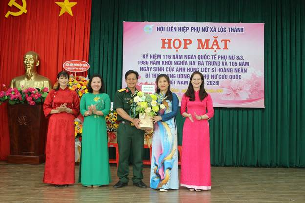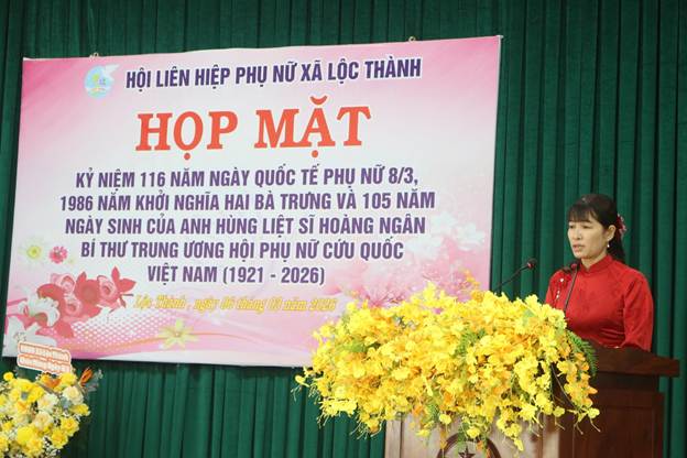 <span style="font-size:18px;"><span style="font-family:Times New Roman,Times,serif;">&nbsp; &nbsp; &nbsp; &nbsp; &nbsp;Chiều ngày 06/3/2026, tại Hội trường UBND xã Lộc Thành, Hội Liên hiệp Phụ nữ xã tổ chức họp mặt kỷ niệm 116 năm Ngày Quốc tế Phụ nữ (08/3/1910 – 08/3/2026), 1986 năm Khởi nghĩa Hai Bà Trưng và 105 năm Ngày sinh Anh hùng liệt sĩ Hoàng Ngân (1921 – 2026) Nguyên Bí thư Trung ương Hội Phụ nữ Cứu quốc Việt Nam.<br />
