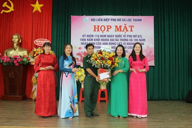 &nbsp; &nbsp; &nbsp; &nbsp; &nbsp;Tham dự buổi lễ có đồng chí Nguyễn Ngọc Hiền – Bí thư Đảng ủy, Chủ tịch HĐND xã; đồng chí Nguyễn Thanh Hoa – Phó Bí thư Thường trực Đảng ủy; đồng chí Hồ Quang Khánh – Phó Bí thư Đảng ủy, Chủ tịch UBND xã; đồng chí Tô Thị Thêu – Ủy viên Ban Thường vụ Đảng ủy, Chủ tịch Ủy ban MTTQ Việt Nam xã; Chỉ huy trưởng Ban CHQS xã, lãnh đạo Công An xã; Lãnh đạo đồn Biên Phòng Cửa khẩu Lộc Thịnh; Lãnh đạo Đồn Biên phòng Lộc Thành; đại diện lãnh đạo các ban, ngành, đoàn thể cùng đông đảo cán bộ, hội viên phụ nữ trên địa bàn xã.<br />