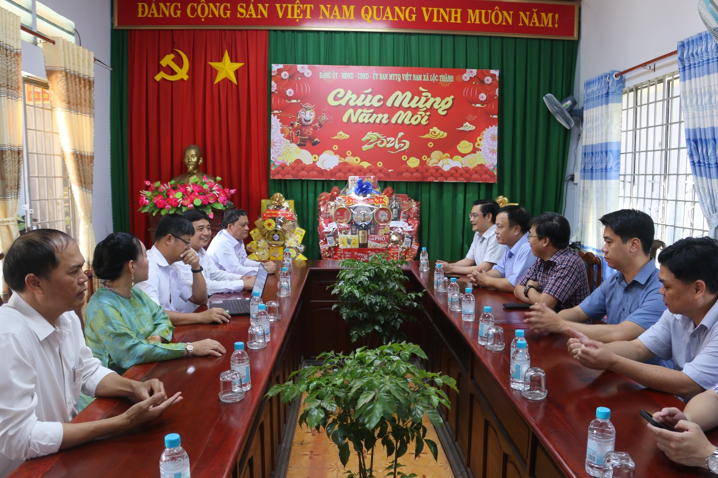 Tiếp và làm việc với các đoàn, về phía địa phương có đồng chí Nguyễn Ngọc Hiền – Bí thư Đảng ủy, Chủ tịch HĐND xã; đồng chí Hồ Quang Khánh – Phó Bí thư Đảng ủy, Chủ tịch UBND xã Lộc Thành, cùng đại diện lãnh đạo Thường trực Đảng ủy, HĐND, UBND, Ủy ban MTTQ Việt Nam xã và các ban, ngành, đoàn thể địa phương.