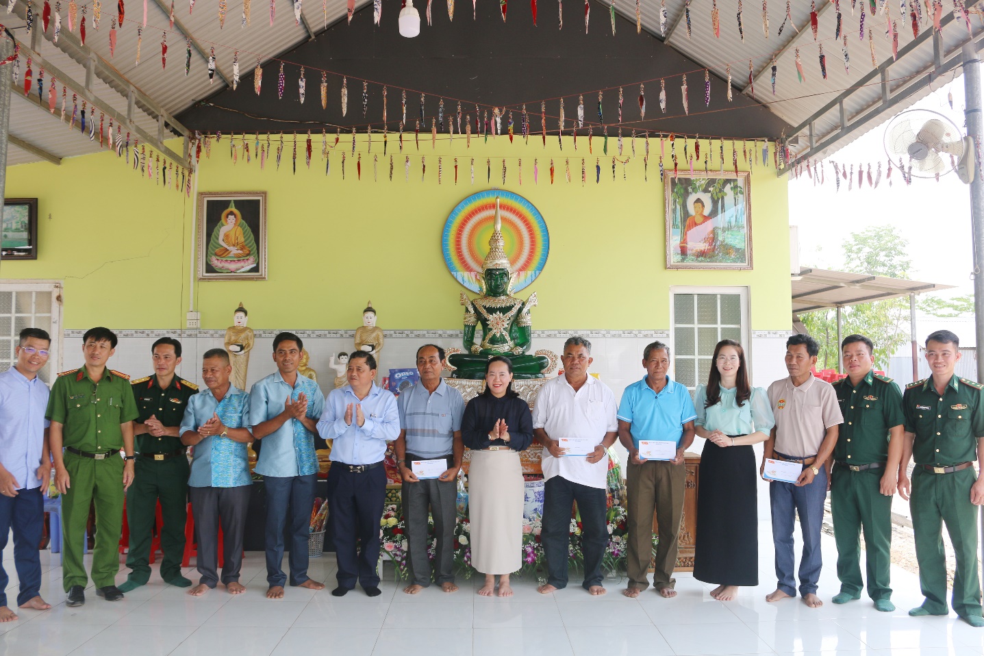 Nhân dịp này, các đoàn đã tổ chức thăm hỏi, tặng quà Tết cho 07 già làng, người có uy tín tiêu biểu trong đồng bào dân tộc Khmer, mỗi phần quà trị giá 500.000 đồng, thể hiện sự trân trọng đối với vai trò nòng cốt của các già làng trong việc giữ gìn bản sắc văn hóa, vận động Nhân dân chấp hành tốt chủ trương của Đảng, chính sách, pháp luật của Nhà nước.