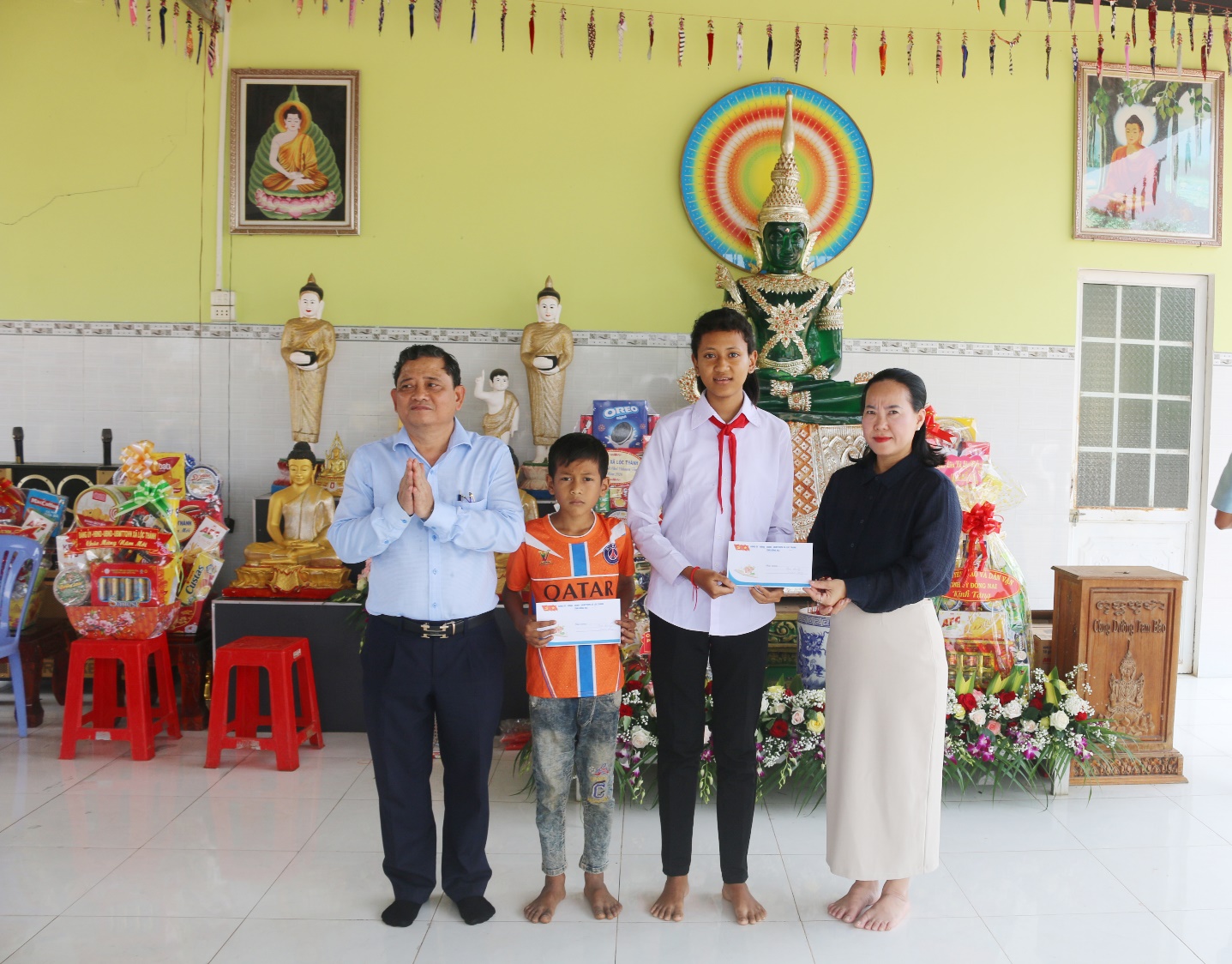 Đồng thời, địa phương đã trao tặng 05 suất học bổng, mỗi suất trị giá 1.000.000 đồng cho các em học sinh là người dân tộc Khmer có hoàn cảnh khó khăn, vượt khó vươn lên trong học tập. Đây là hoạt động thiết thực, góp phần khích lệ tinh thần hiếu học, tạo động lực để các em tiếp tục phấn đấu, vươn lên trong cuộc sống. Những phần quà tuy giá trị không lớn nhưng mang ý nghĩa tinh thần sâu sắc, thể hiện sự quan tâm toàn diện của cấp ủy, chính quyền đối với đồng bào Khmer; qua đó tiếp tục củng cố niềm tin của Nhân dân, tăng cường khối đại đoàn kết toàn dân tộc.
