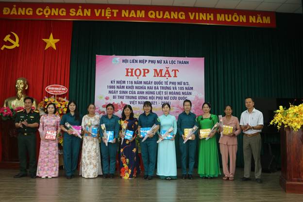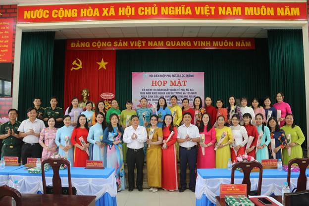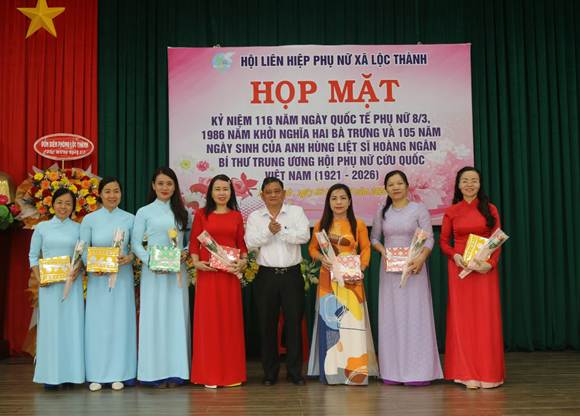 Chiều ngày 06/3/2026, tại Hội trường UBND xã Lộc Thành, Hội Liên hiệp Phụ nữ xã tổ chức họp mặt kỷ niệm 116 năm Ngày Quốc tế Phụ nữ (08/3/1910 – 08/3/2026), 1986 năm Khởi nghĩa Hai Bà Trưng và 105 năm Ngày sinh Anh hùng liệt sĩ Hoàng Ngân (1921 – 2026) Nguyên Bí thư Trung ương Hội Phụ nữ Cứu quốc Việt Nam.