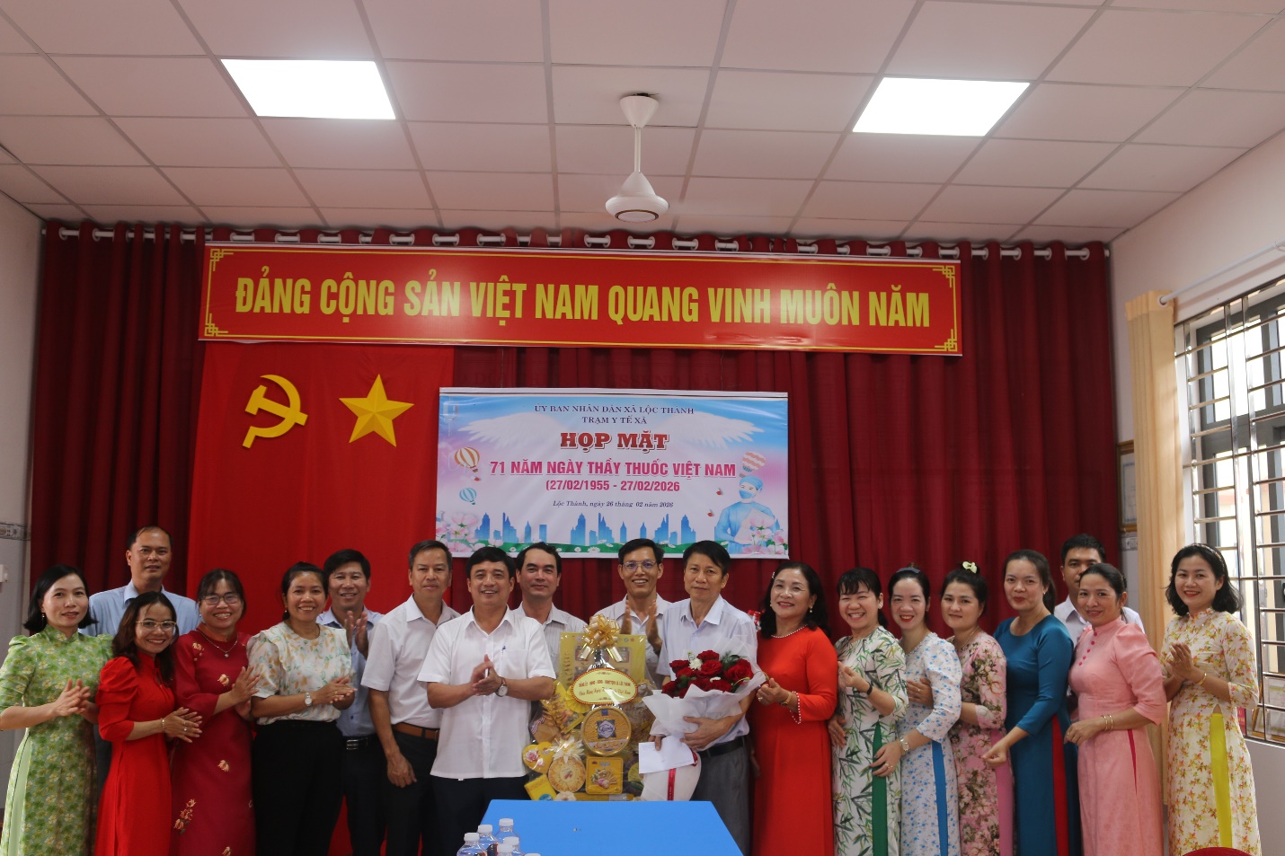 Nhân kỷ niệm Ngày Thầy thuốc Việt Nam 27/02, chiều ngày 26/02/2026, đồng chí Hồ Quang Khánh - Phó Bí thư Đảng ủy, Chủ tịch UBND xã Lộc Thành làm trưởng đoàn đã đến thăm, tặng hoa và chúc mừng tập thể cán bộ, y bác sĩ, nhân viên Trạm Y tế xã Lộc Thành.