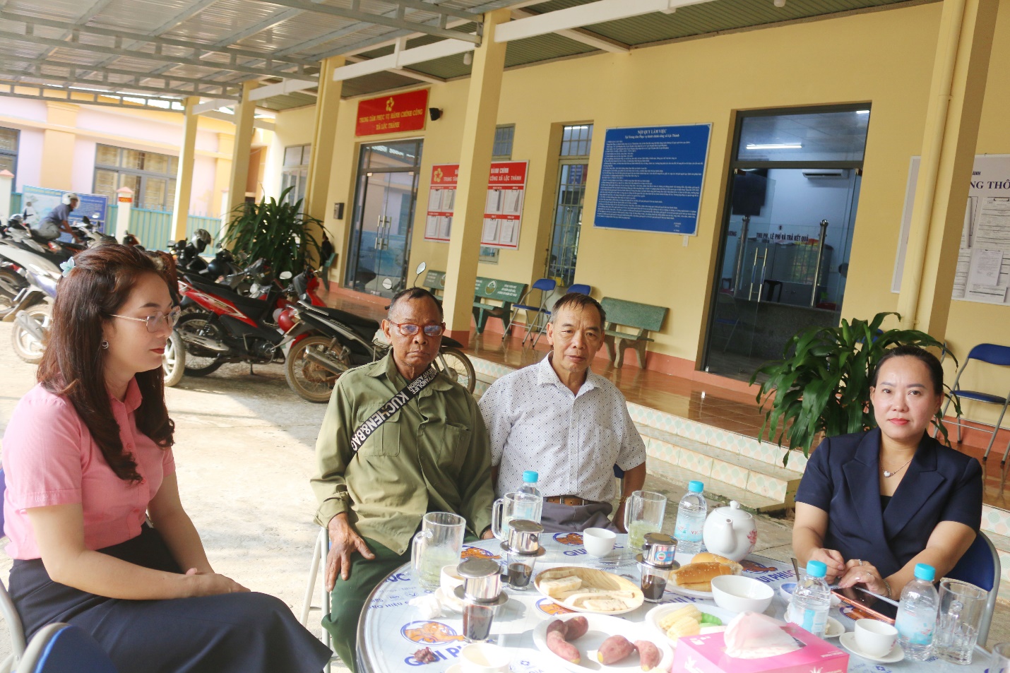 Tham dự có ông Nguyễn Ngọc Hiền – Bí thư Đảng ủy, Chủ tịch HĐND xã; ông Hồ Quang Khánh – Phó Bí thư đảng ủy, Chủ tịch UBND xã; bà Tô Thị Thêu – UVBTV, Chủ tịch Ủy ban MTTQ Việt Nam xã; bà Nguyễn Thị Kiều Trang – UV.BTV, Phó Chủ tịch UBND xã; ông Lê Thỉnh – Đảng ủy viên, Phó Chủ tịch UBND xã, cùng sự phối hợp chặt chẽ của các Phòng Ban chuyên môn và đại diện các đoàn thể chính trị - xã hội trực tiếp cùng ngồi lại với bà con trong không khí thân tình, gần gũi bên chén trà buổi sớm để lắng nghe, trao đổi tâm tư, nguyện vọng. Chính sự gần gũi này đã góp phần xóa nhòa khoảng cách, giúp những vấn đề thiết thực như thủ tục đất đai, chính sách dân tộc hay hạ tầng giao thông được phản ánh một cách chân thành, thẳng thắn nhất.