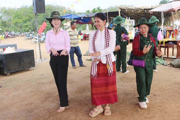 Trong khi dưới bàu rộn ràng tiếng đánh bắt, thì trên bờ, không khí càng thêm phần say mê với các điệu múa truyền thống uyển chuyển. Những vòng người nối dài cùng hòa mình vào điệu múa Răm Vông, múa Saravan trong tiếng nhạc truyền thống vang dội. Những cánh tay mềm mại, bước chân nhịp nhàng của các thiếu nữ và chàng trai địa phương đã tạo nên một không gian văn hóa rực rỡ sắc màu, thu hút đông đảo du khách thập phương dừng chân chiêm ngưỡng và hòa chung niềm vui.