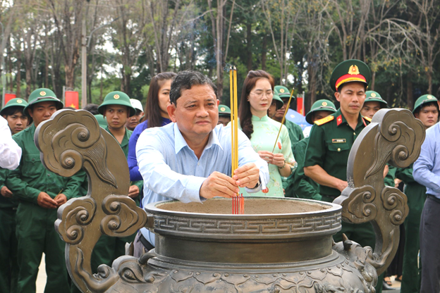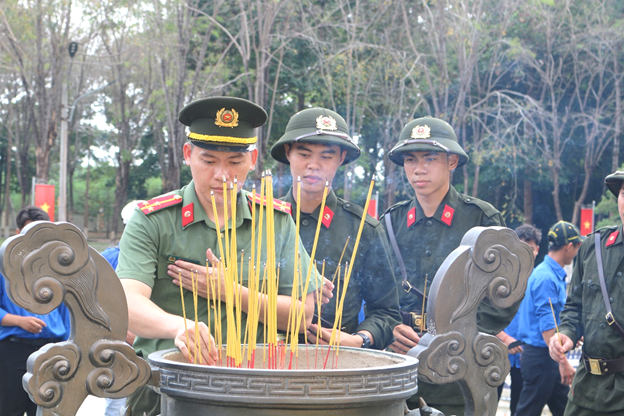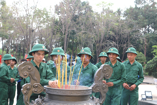 Trước khi diễn ra lễ khai mạc, đoàn đại biểu đã long trọng tổ chức dâng hương tại Đài tưởng niệm thuộc Khu di tích Tà Thiết. Trong không khí thiêng liêng, các đại biểu và tân binh đã thành kính đặt vòng hoa, dâng hương và dành phút mặc niệm tưởng nhớ Chủ tịch Hồ Chí Minh vĩ đại cùng các anh hùng liệt sĩ đã anh dũng hy sinh vì sự nghiệp đấu tranh giải phóng dân tộc, bảo vệ Tổ quốc. Nghi thức dâng hương thể hiện lòng biết ơn sâu sắc của thế hệ hôm nay đối với công lao to lớn của cha anh, đồng thời giáo dục truyền thống yêu nước, hun đúc ý chí, trách nhiệm cho các thanh niên trước khi lên đường thực hiện nghĩa vụ thiêng liêng với Tổ quốc.