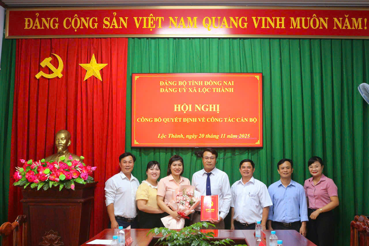 Chiều ngày 20/11/2025, Đảng ủy xã Lộc Thành tổ chức công bố Quyết định bổ nhiệm Chánh Văn phòng Đảng ủy xã.