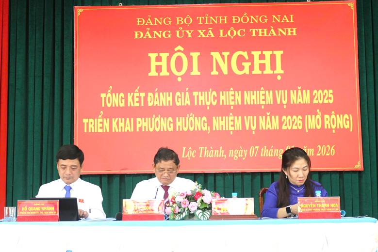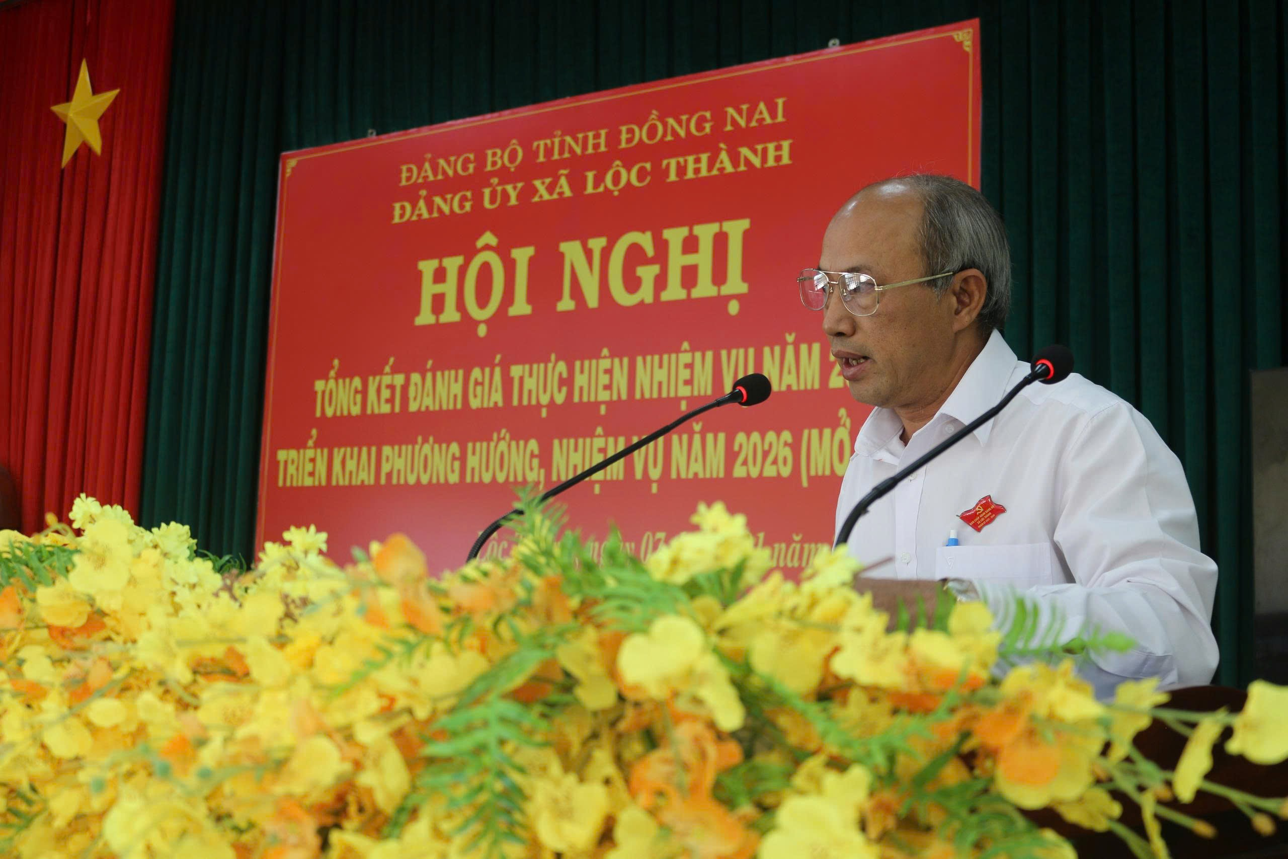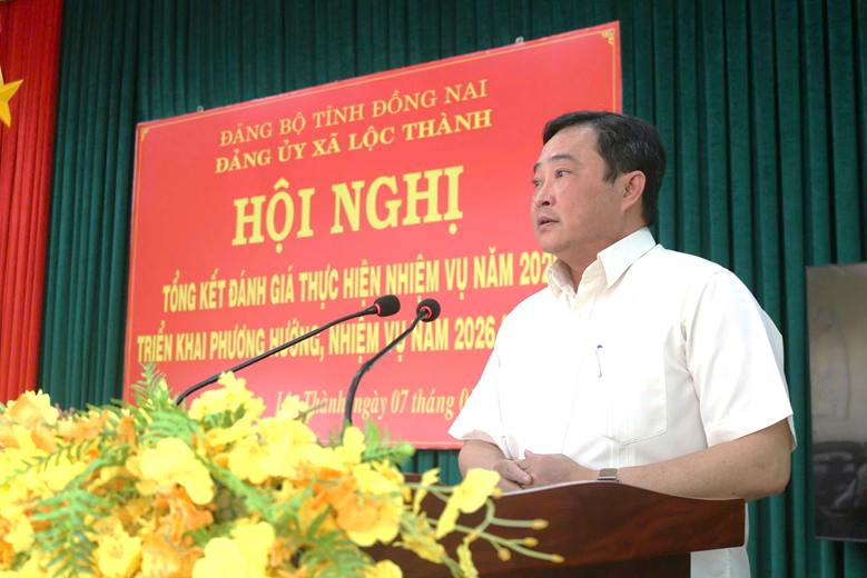 Chiều ngày 07/01/2026, Đảng ủy xã Lộc Thành tổ chức Hội nghị tổng kết, đánh giá kết quả thực hiện nhiệm vụ năm 2025 và triển khai phương hướng, nhiệm vụ năm 2026. Dự và chỉ đạo hội nghị có đồng chí Nguyễn Hữu Định - TUV, Giám đốc Sở Nội vụ tỉnh Đồng Nai.