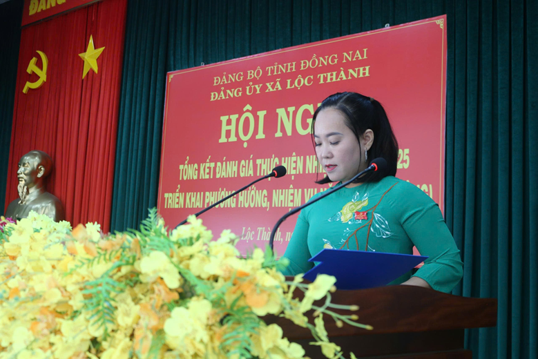 Đồng chí Nguyễn Thanh Hoa - Phó bí thư thường trực Đảng ủy thông qua dự thảo kết quả thực hiện nhiệm vụ năm 2025 và phương hướng, nhiệm vụ năm 2026 của Đảng ủy xã Lộc Thành