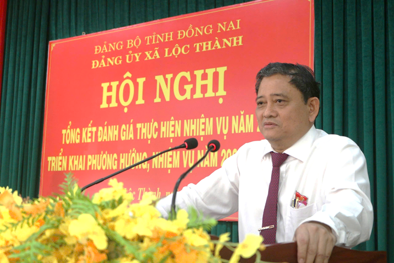Đồng chí Nguyễn Hữu Định -TUV, Giám đốc Sở Nội vụ tỉnh Đồng Nai đánh giá cao những kết quả mà Đảng bộ xã Lộc Thành đạt được