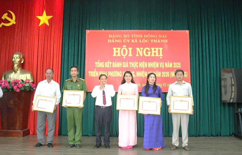 Tại hội nghị, Đảng ủy xã Lộc Thành đã biểu dương, khen thưởng các tổ chức Đảng và đảng viên hoàn thành xuất sắc nhiệm vụ năm 2025.