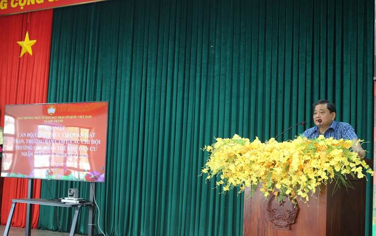 Phát biểu tại buổi họp mặt, đồng chí Nguyễn Ngọc Hiền - Bí thư Đảng ủy, Chủ tịch HĐND xã ghi nhận, biểu dương và đánh giá cao những đóng góp tích cực của đội ngũ cán bộ Mặt trận, Ban Công tác Mặt trận và các chi hội trưởng đoàn thể khu dân cư trong việc củng cố khối đại đoàn kết toàn dân tộc, góp phần xây dựng khu dân cư ngày càng văn minh, phát triển.