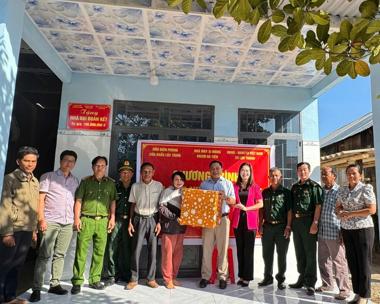 Tại ấp Chà Là, căn nhà Đại đoàn kết đã được tổ chức bàn giao cho bà Thị Hạnh. Công trình được xây dựng từ nguồn tài trợ 80 triệu đồng của Nhà máy Xi măng Hà Tiên 1. Bên cạnh đó, ông Lê Văn Sơn – cán bộ Đồn Biên phòng Lộc Thịnh đã tích cực vận động thêm 28,9 triệu đồng từ các cá nhân, nhà hảo tâm để hỗ trợ gia đình hoàn thiện căn nhà, cụ thể: ông Nguyễn Đình Thắng (Công ty CP Tư vấn Kiểm định PTKHCN Miền Nam) 1 triệu đồng; ông Nguyễn Hồng Thủy (phường Bình Long, tỉnh Đồng Nai) 1 triệu đồng; ông Nguyễn Trung Tính (xã Phú Nghĩa, tỉnh Đồng Nai) 10 triệu đồng; ông Trần Hoàng Thương (DNTN Hoàn Trọng Tà Thiết) 2 triệu đồng; ông Trần Văn Tú (tỉnh Tây Ninh) 8 triệu đồng; ông Nguyễn Kim Hoàng (đường Hà Huy Giáp, phường Thạnh Lộc, Quận 12) 3 triệu đồng; ông Phan Văn Cường, ông Lê Văn Sơn cùng các nhà hảo tâm và cán bộ, chiến sĩ Trạm Biên phòng Lộc Thịnh 3,9 triệu đồng.