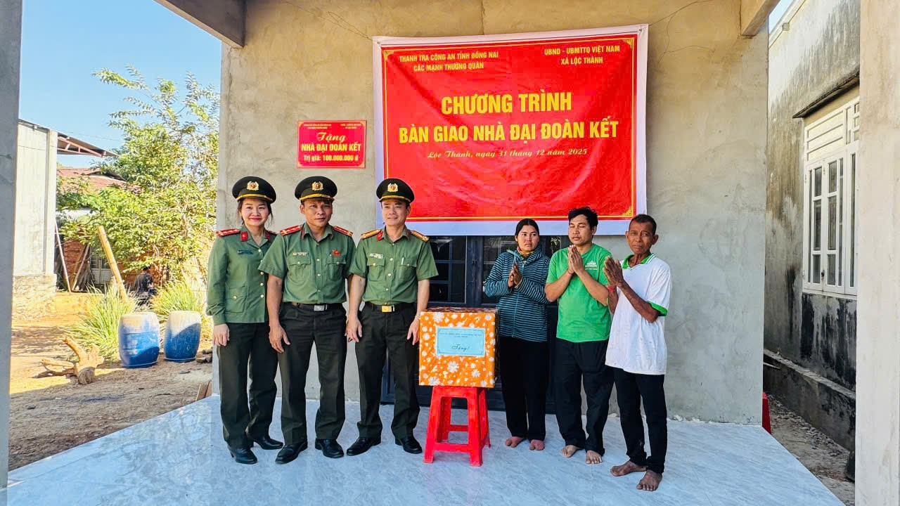 Cùng ngày, tại ấp K Liêu, đoàn đã bàn giao căn nhà Đại đoàn kết cho hộ ông Lâm Pâu, từ nguồn tài trợ của Phòng Thanh tra Công an tỉnh Đồng Nai cùng sự chung tay đóng góp của các mạnh thường quân.