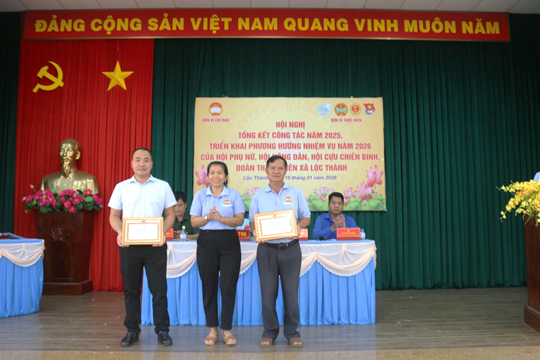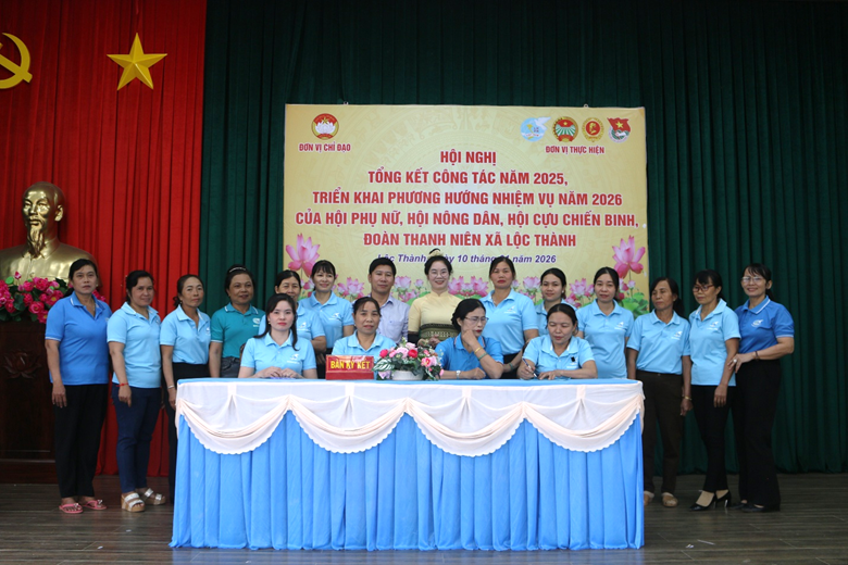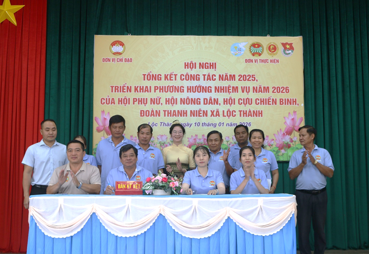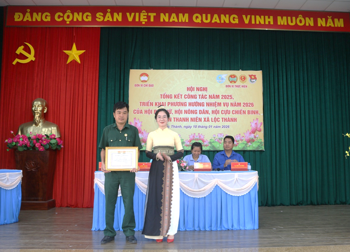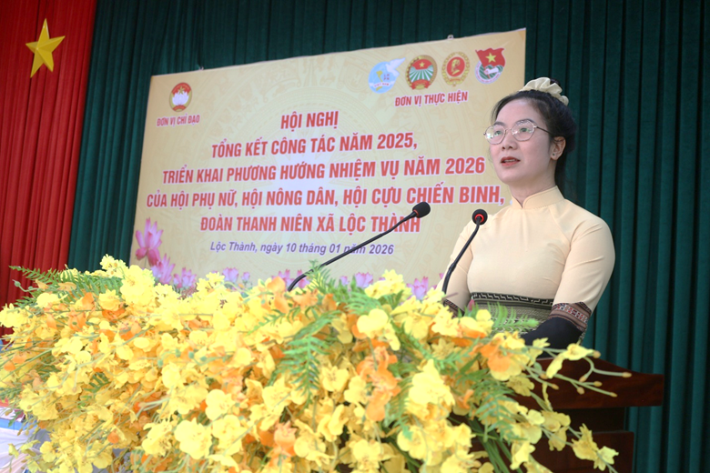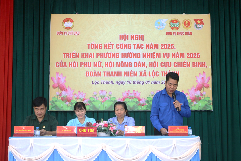 Chiều ngày 10/01/2026, xã Lộc Thành tổ chức Hội nghị tổng kết công tác năm 2025 và triển khai phương hướng, nhiệm vụ trọng tâm năm 2026 của các tổ chức chính trị – xã hội, gồm: Hội Liên hiệp Phụ nữ, Hội Nông dân, Hội Cựu chiến binh và Đoàn Thanh niên xã.